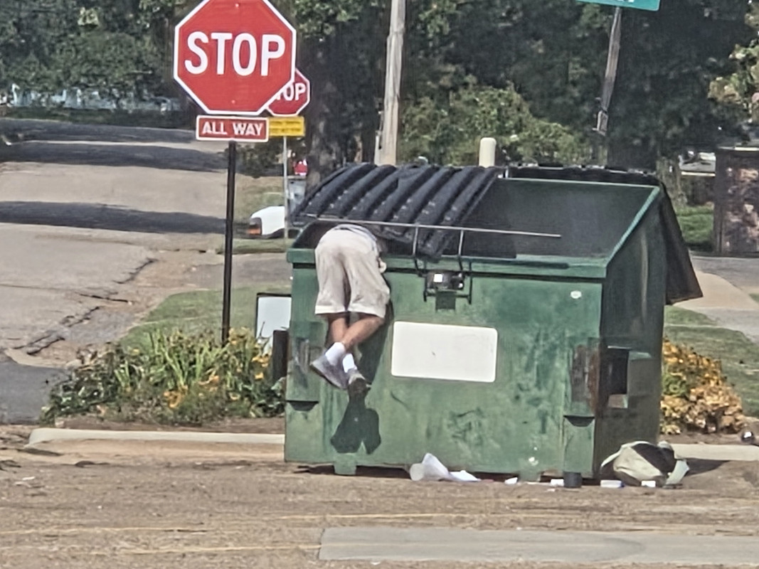 He doesn't look particularly dedicated to his craft. If you want the good stuff you have to get all the way into the dumpster.