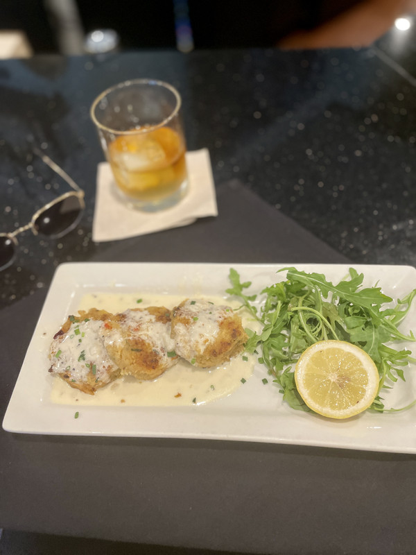 Salmon Cakes...plus a double Makers on a whiskey cube.