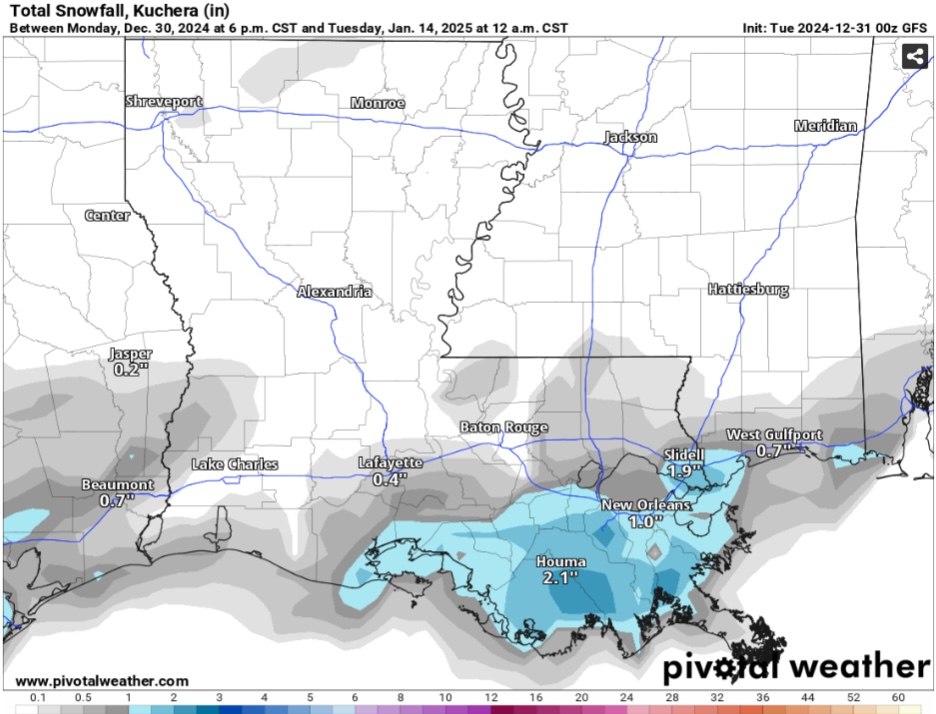 Any chance of snow in NOLA? Only time I get excited about cold weather.