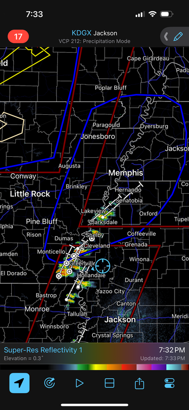 Those 2 cells near Clarksville, Ar are going to be a problem soon