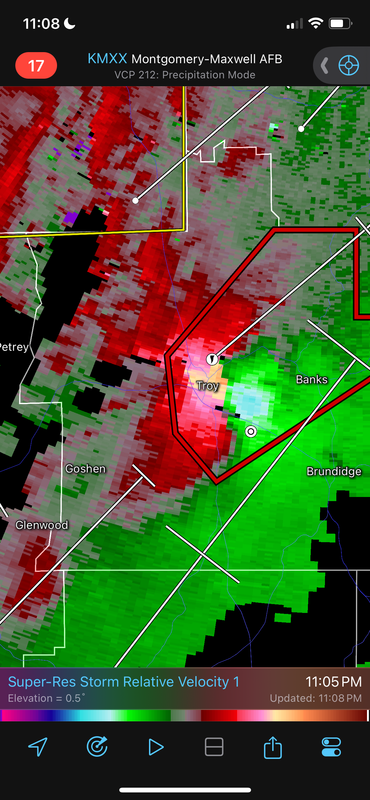 Parents live in Jackson's gap but just south of where it looks like tornado is going through. Mom is here with us in perido Key visiting this weekend, dad is under their house. Too close for comfort.