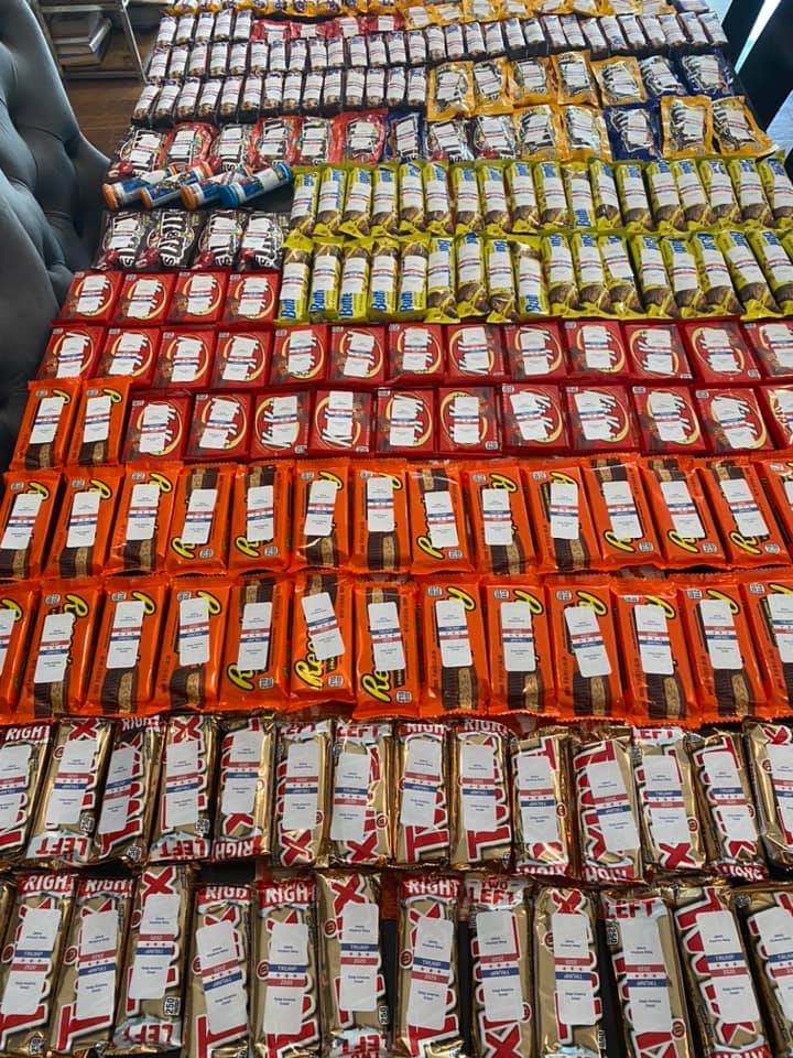 One street end had a whole set up with fire pits, kids got three big treat bags and then they even had hot dogs grilling.