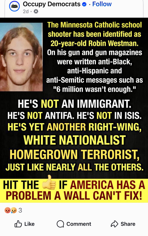 re: Mass casualty shooting in Minneapolis at a church school 20 victims