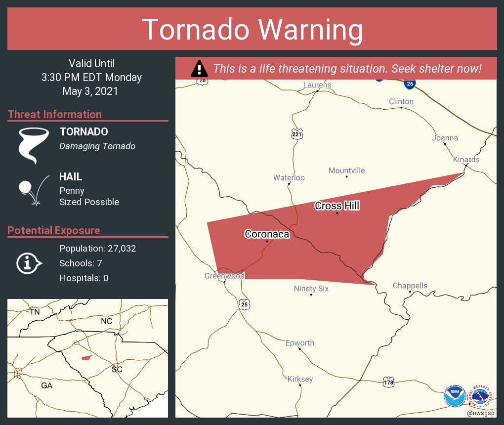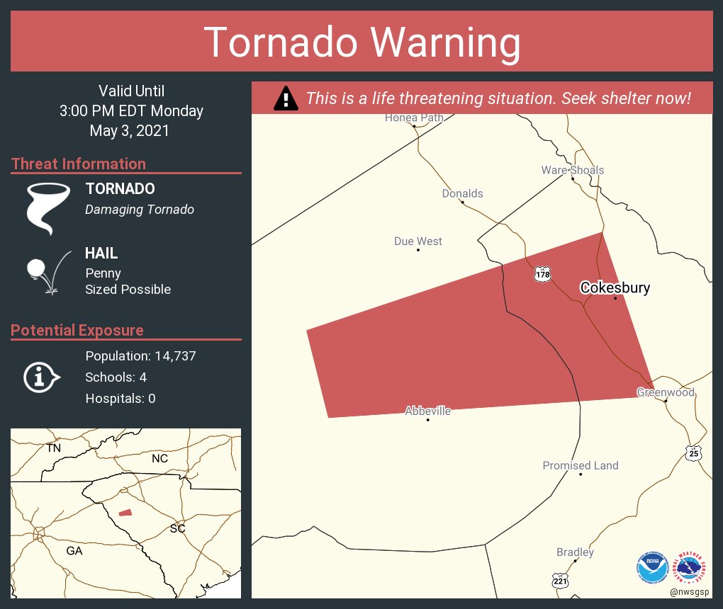 NWS still calling the tornado north of Abbeville, SC a large and extremely dangerous tornado on the latest warning update.