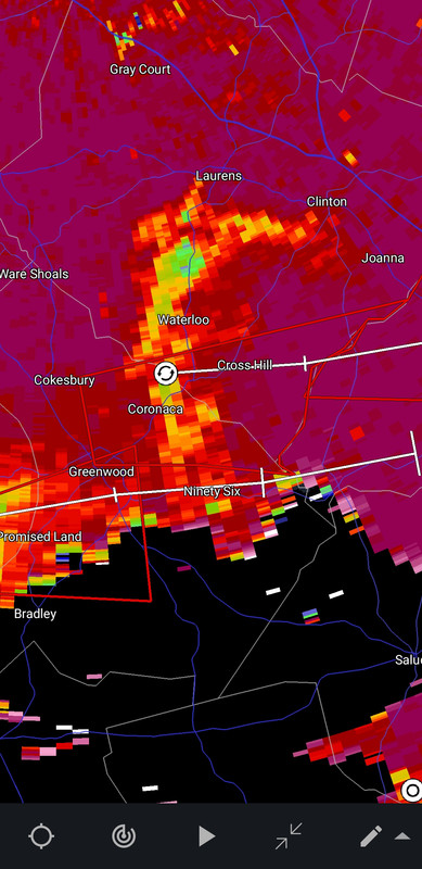 That tornado just went from missing Cross Hill to the South to tracking right through town, if it is still on the ground.