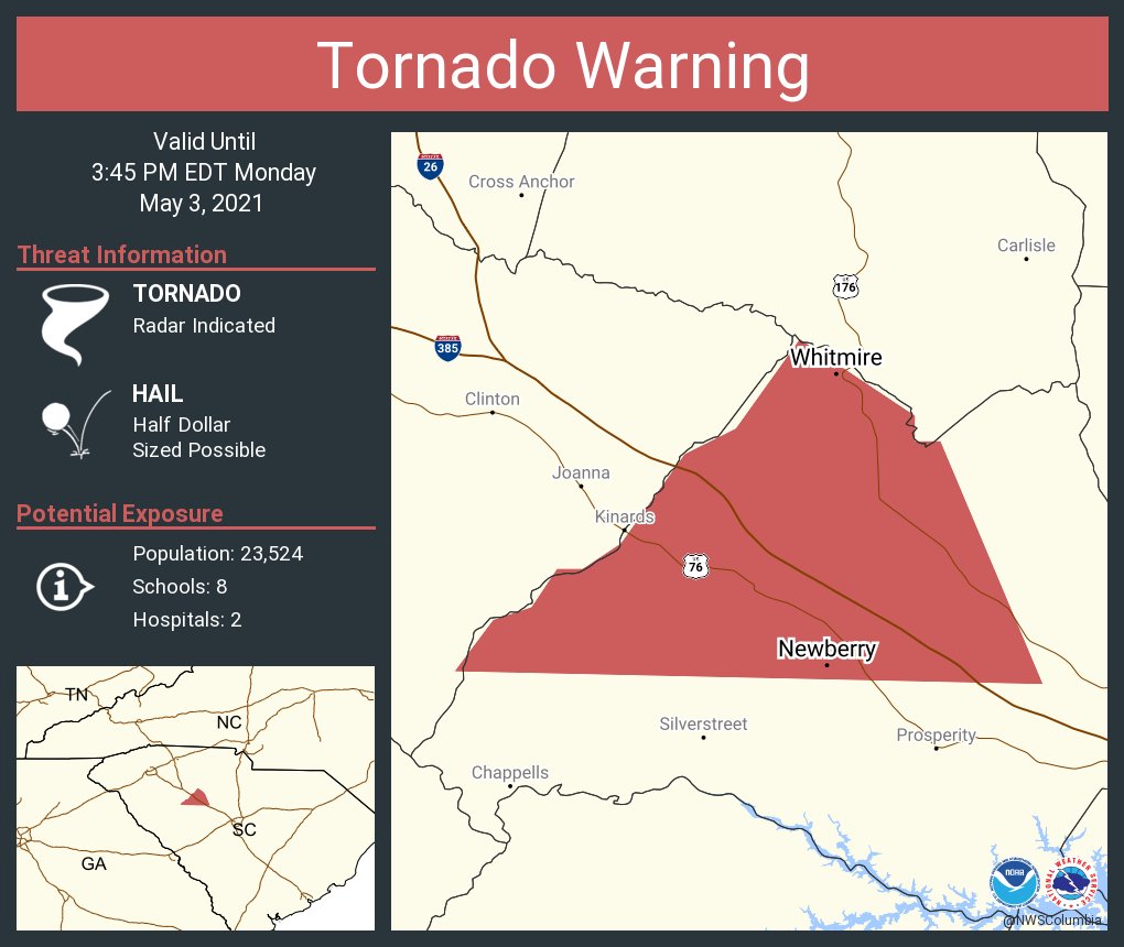 That tornado just went from missing Cross Hill to the South to tracking right through town, if it is still on the ground.