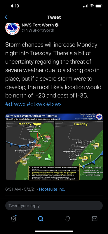 The NWS Ft Worth has gotten numerous things either wrong and in some cases haven’t even predicted severe weather in the area that ends up happening.
