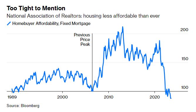 Housing affordability is the worst on record, per the National Association of Realtors.
