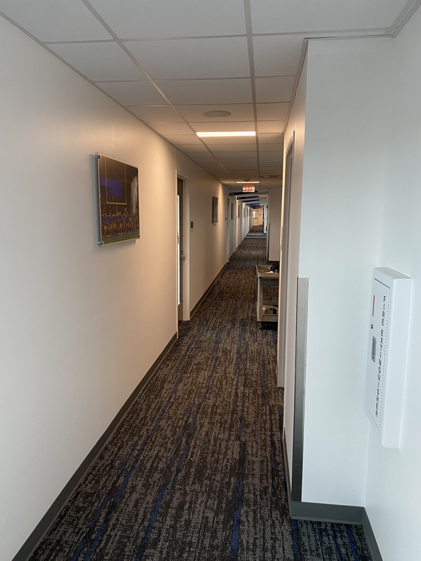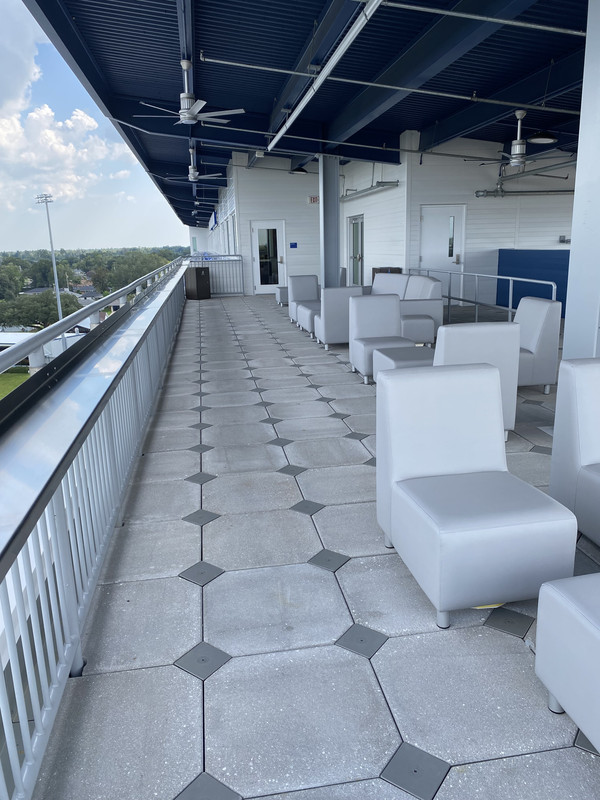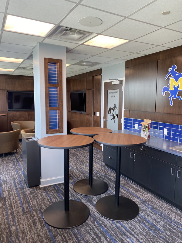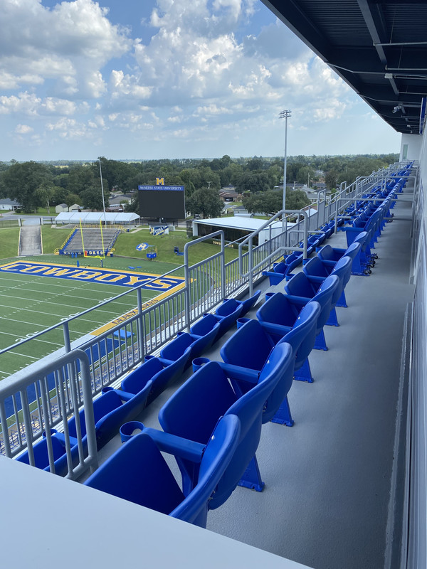 MSU opens its new 32 million dollar press box this Saturday to replace the one that was taken down after Laura. It consists of a media level, two meal prep rooms, outdoor lounge area, and two levels of suites. Here’s some pictures I took.