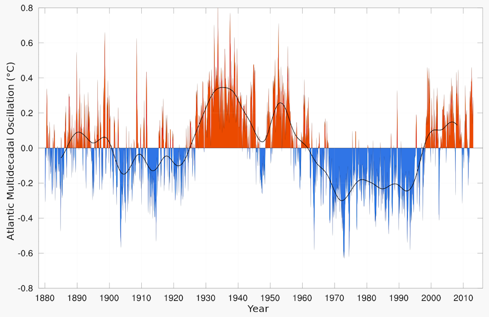 In light of the Atlantic Multi-Decadal Oscillation, it is possible that in 10 more years we are going to be in the midst of global cooling like we saw in the 70s. The start of the global warming hype has coincided with the warm stage of the Atlantic Multi-Decadal Oscillation, and we might be on the tail end of that warm cycle.