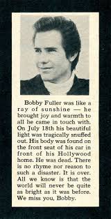 Within months of "I Fought the Law" becoming a top 10 hit, Fuller was found dead in an automobile parked outside his Hollywood apartment. The Los Angeles deputy medical examiner, Jerry Nelson, performed the autopsy. According to Dean Kuipers: "The report states that Bobby's face, chest, and side were covered in 'petechial hemorrhages,' probably caused by gasoline vapors and the summer heat. He found no bruises, no broken bones, no cuts. No evidence of beating." Kuipers further explains that boxes for "accident" and "suicide" were checked, but next to the boxes were question marks. Despite the official cause of death, some commentators believe Fuller was murdered.