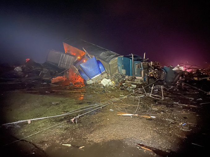 Horrible damage in Rolling Forks, MS. I can’t put into words the way I am feeling. @TreyceJonesWX and I are okay, we tried to help as many people as we could… #wx #tornado #mswx