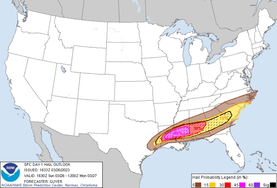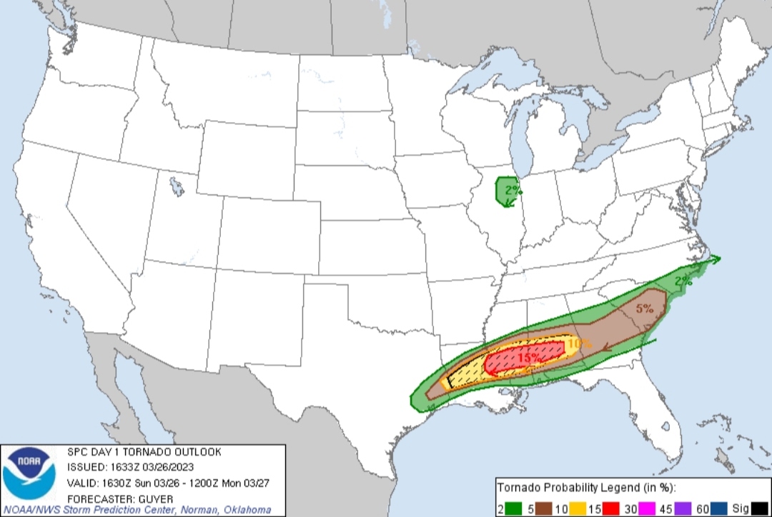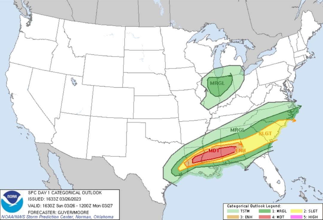 Day 1 Convective Outlook NWS Storm Prediction Center Norman OK 1133 AM CDT Sun Mar 26 2023