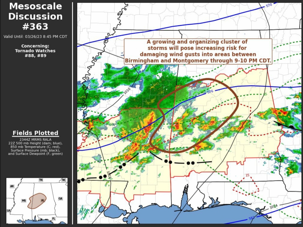 Feels like the northern extent of the severe threat has definitely shifted northward compared to where it was forecasted to be yesterday. Still looks like it’ll stay south of Birmingham, though.