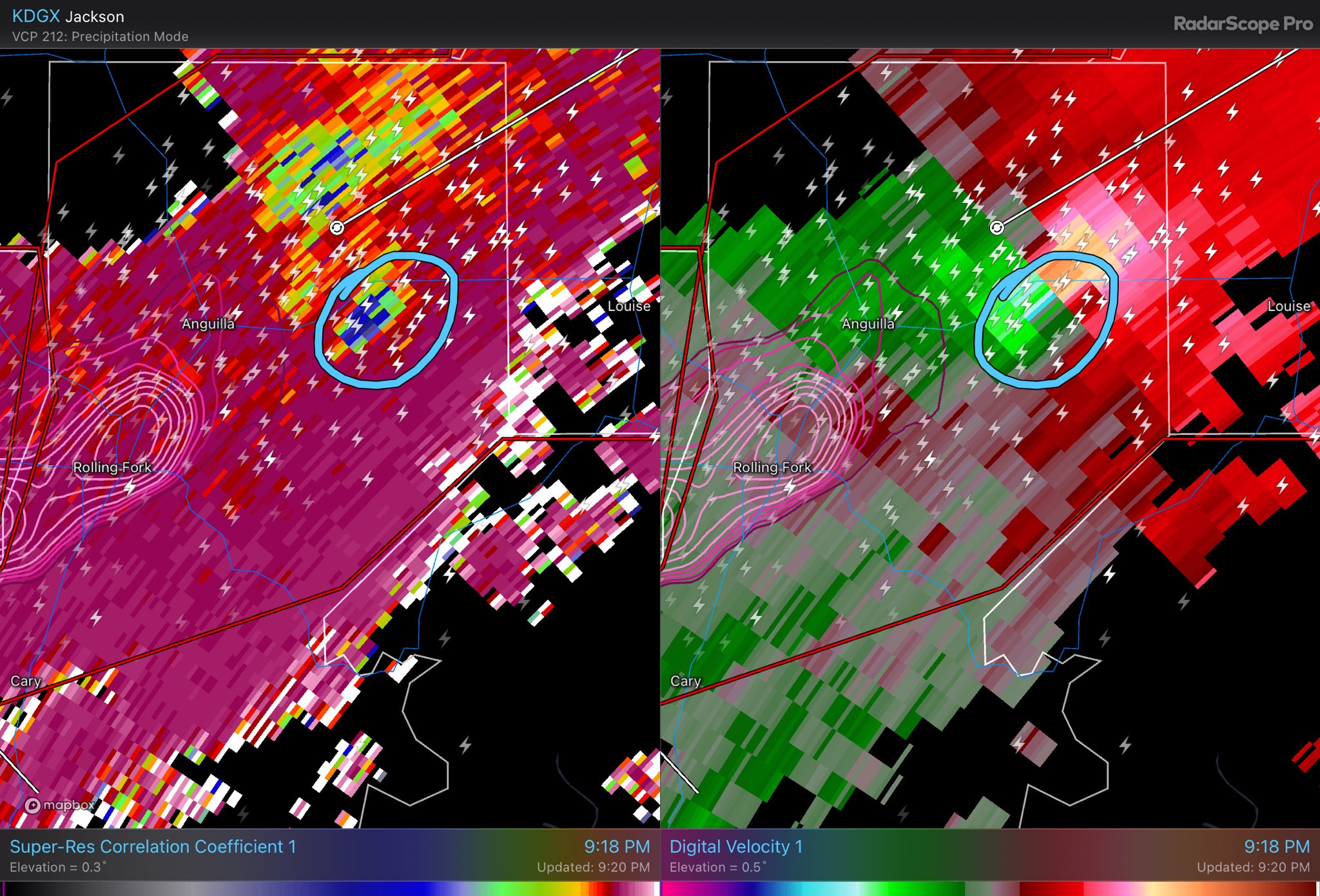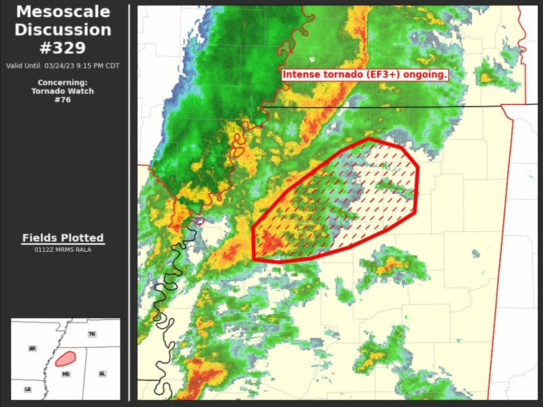 At 815 PM CDT, a confirmed large and destructive tornado was located near Anguilla, or near Rolling Fork, moving northeast at 55 mph.