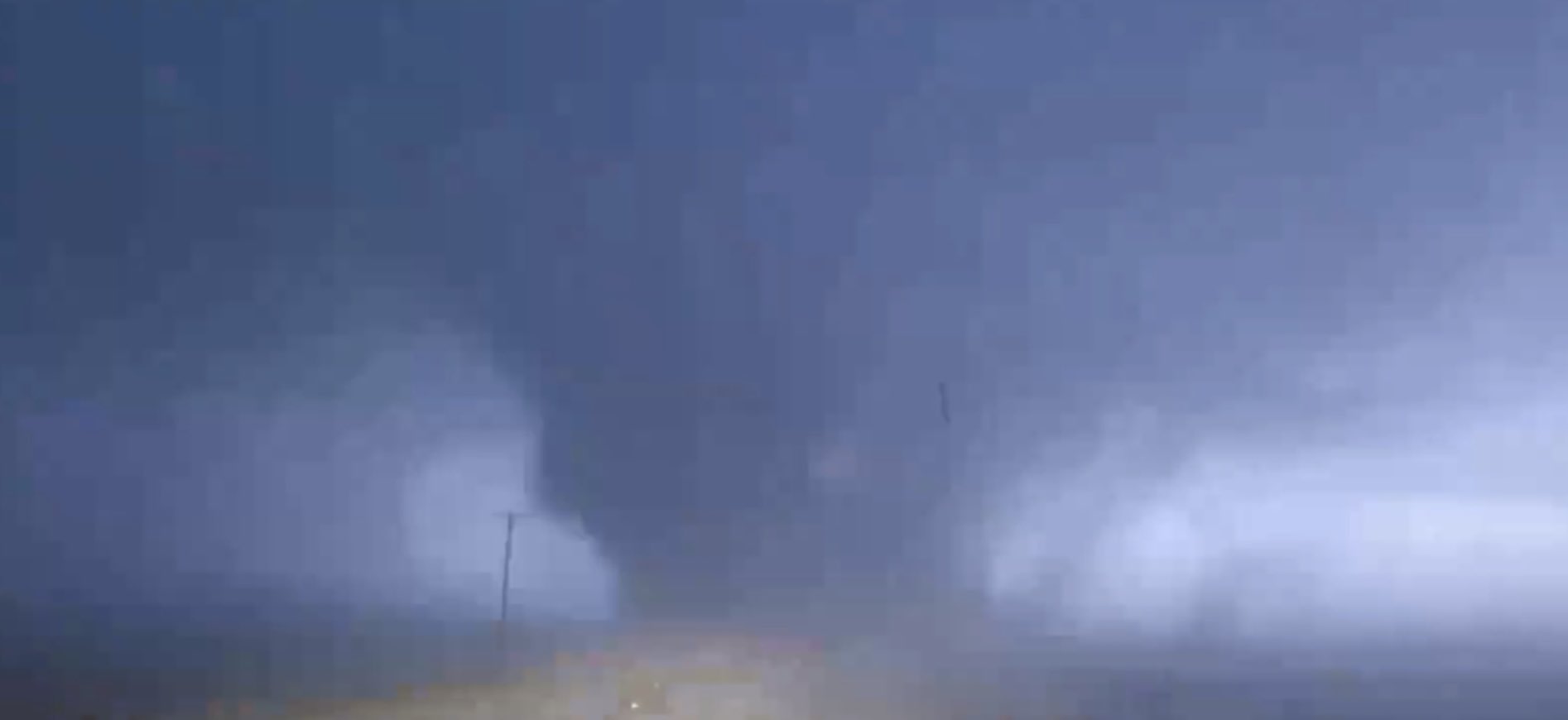 Adam, Ben, and Stephen's view from our live video stream as a violent tornado approached Rolling Fork, MS at about 8:05 PM CT. #mswx @NWSJacksonMS