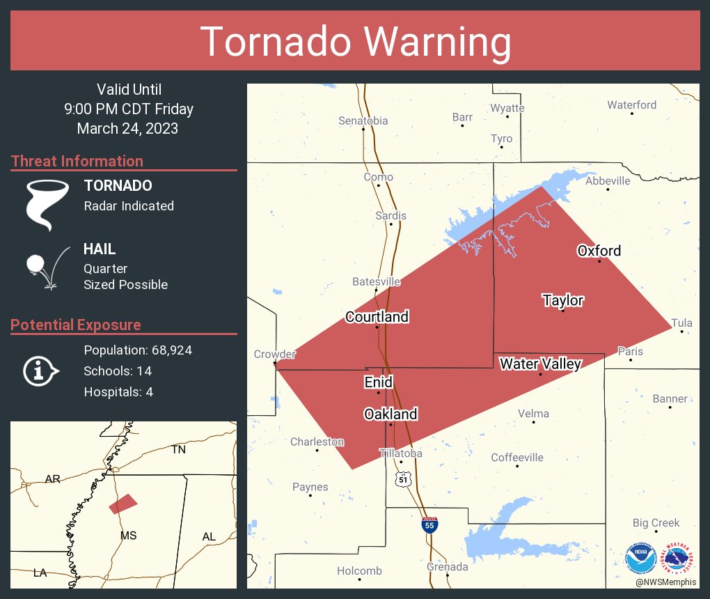 The tornado will be near... Midnight around 830 PM CDT. Belzoni around 840 PM CDT.