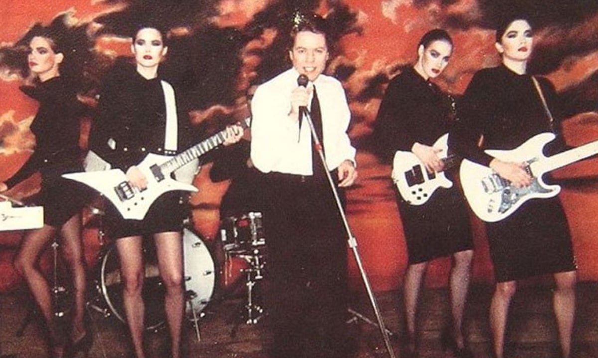 You wear the white shirt and skinny black tie. She wears the tight dress and toy guitar. She slicks her hair back. Works best if she’s a brunette.
