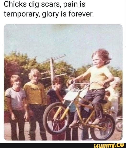 “bones heal, pain is temporary, [and] chicks dig scars...”