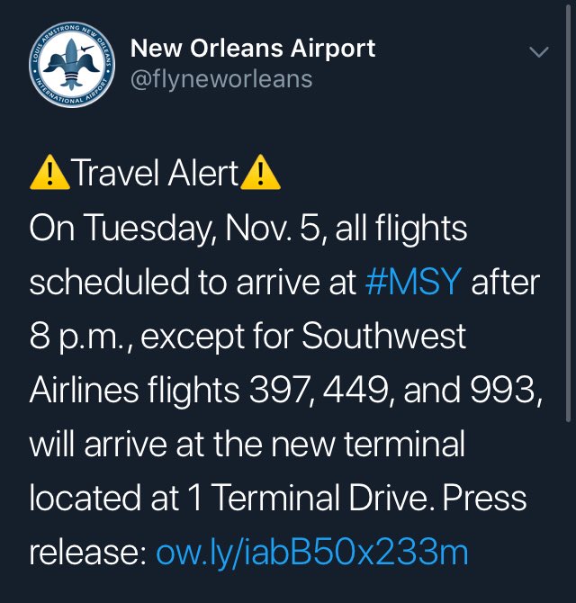 FYI for my Bayou peeps that used to get off on 310, Park N Fly is staying in their same location, so if you don’t want to go all the way around to 10, consider using them. I parked their this morning and flew out of old. Flying back into new at midnight on Thursday/Friday