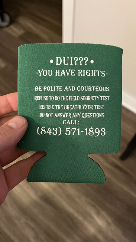 I got a koozie from a DUI lawyer yesterday that said you should refuse it.