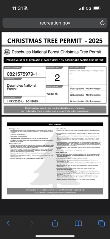 6 foot Sub Alpine Fir. $5 permit and I had a great time exploring the Deschutes National Forest.