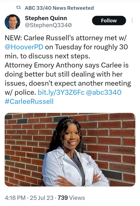 “Carlee’s actions created hurt, confusion, and dishonesty,” her ex Thomar Latrell Simmons said on Instagram. “I was made aware of the false narrative after coming to the defense of my ex Carlee Russell. Myself and my family’s nature was to react in love, and genuine concern. We are disgusted from the outcome of this entire situation. I strongly feel exactly like you all, blindsided with Carlee’s actions.”