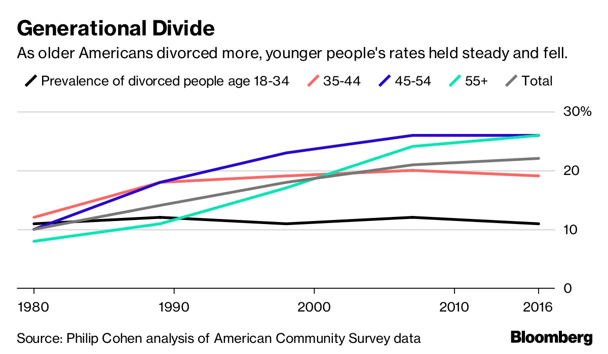 Did he break all those numbers down by socioeconomic status? The lower incomes get divorced more often which pumps up those numbers.