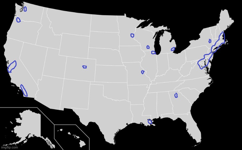 And that's not a yankee thing, that is a coastal elite thing. Look at this map, you get rid of the blue circles and quite a lot of problems go with it.