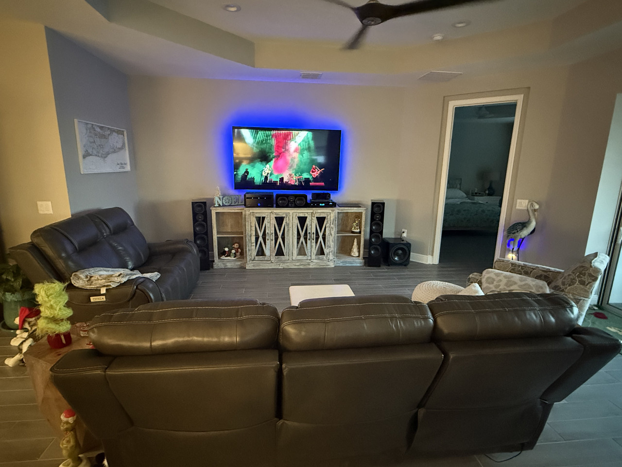 I was also about to recommend moving your sub to the left corner but now I see you’re running stereo subs. In all honesty, you’ll quite often get better sound with one sub in a corner if you can get away with it (less phase cancellation and you get an output boost from the corner) but I get the appeal.