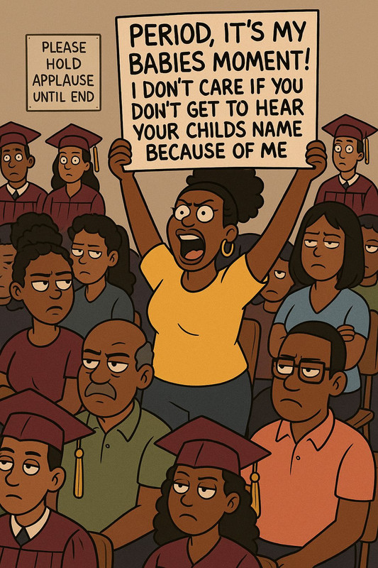 Literally had a "queen" standing at the bottom of the steps at the PMAC screaming "BLACK STUDIES MATTER" for a solid minute after her baby shucked and jived across the stage.