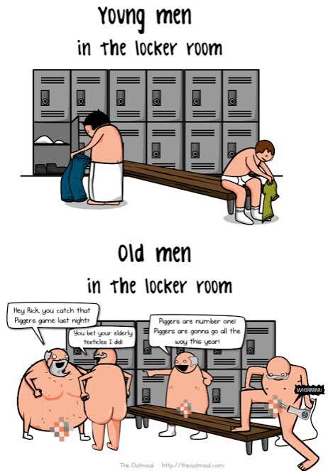 I can go to the locker room, completely change, pee and head out before any of these dudes make any effort to do anything but just hang around naked.