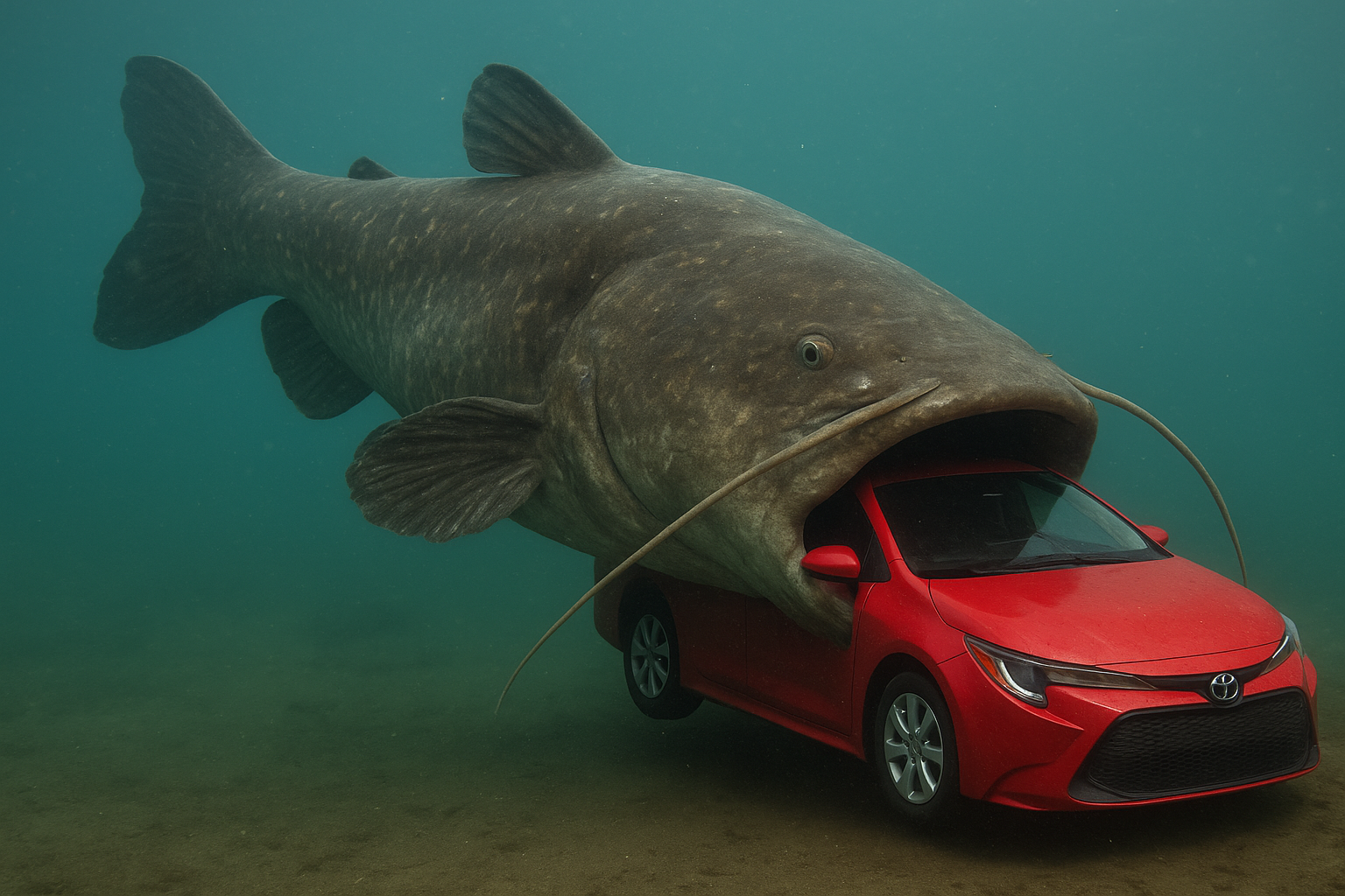 OP being AI notwithstanding, I remember hearing stories about divers who inspected the lower portions of Guntersville Dam saying they weren't going back down there because the catfish were so big they were afraid.
