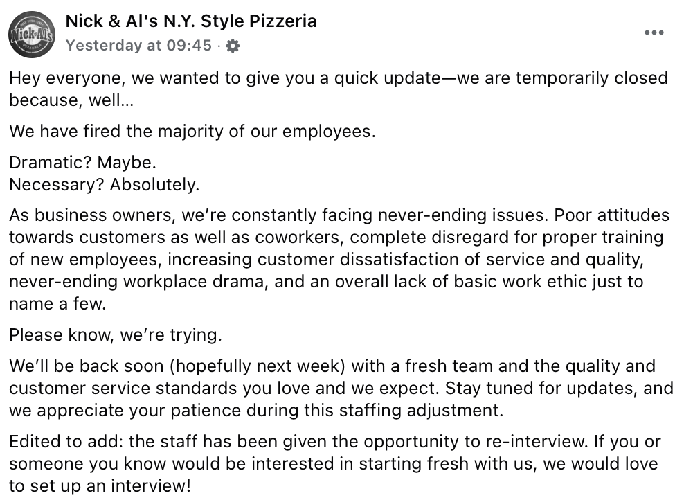 That's a great way to solicit new employees. Ownership must be dog shite.