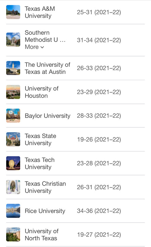 ACT scores for Texas schools. The low 20’s puts your kid behind the 8 ball at most schools.