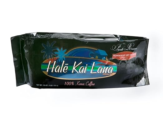 Hale Kai Lana, 100% Kona Coffee, Medium Roast, 1 lb. (16 oz), Ground