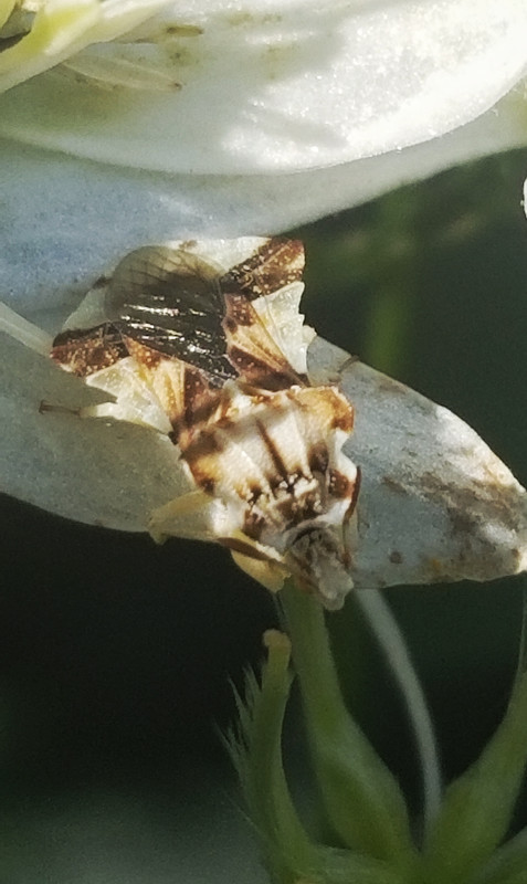 Here's a new one for me that I spotted on some fading jasmine just a bit ago. Not the greatest pic because the wind was blowing and it is from my phone, but I've never seen it before. I don't know how I really saw it this time because it is the same color as the jasmine blooms that are on their way out. It is a type of Assasin Bug.
