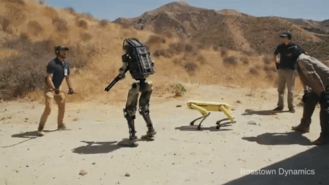 Flying gun drones are scarier, but due to the anthropomorphic nature of the robot dogs/humans people are more creeped out by them.