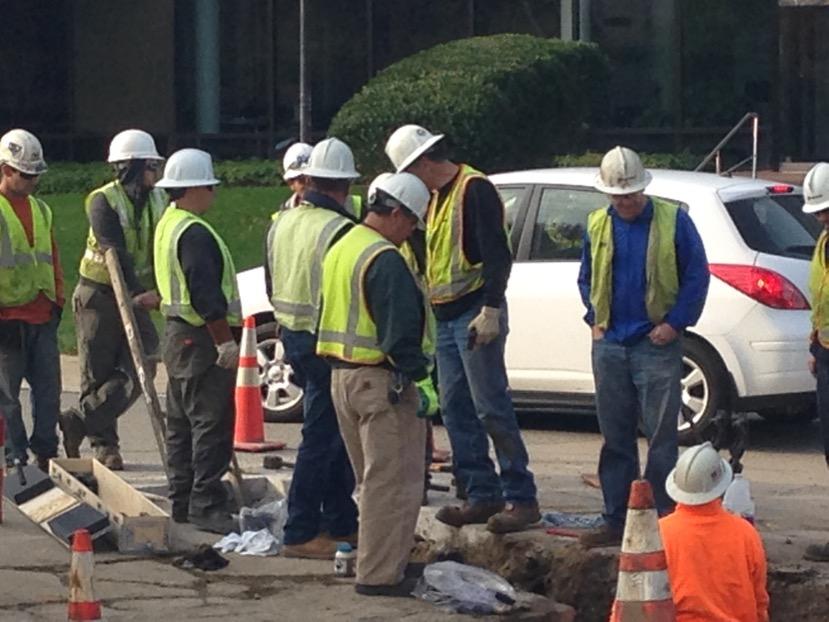 Looks like every road crew I’ve ever seen. 1 Mexican in the hole, 12 guys standing around watching.