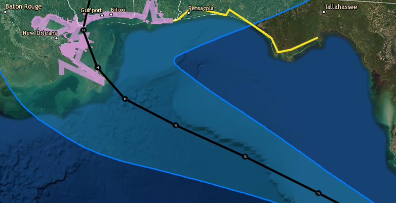 NHC has been pretty honed in on LA/MS border. Be interesting to see if they change it.