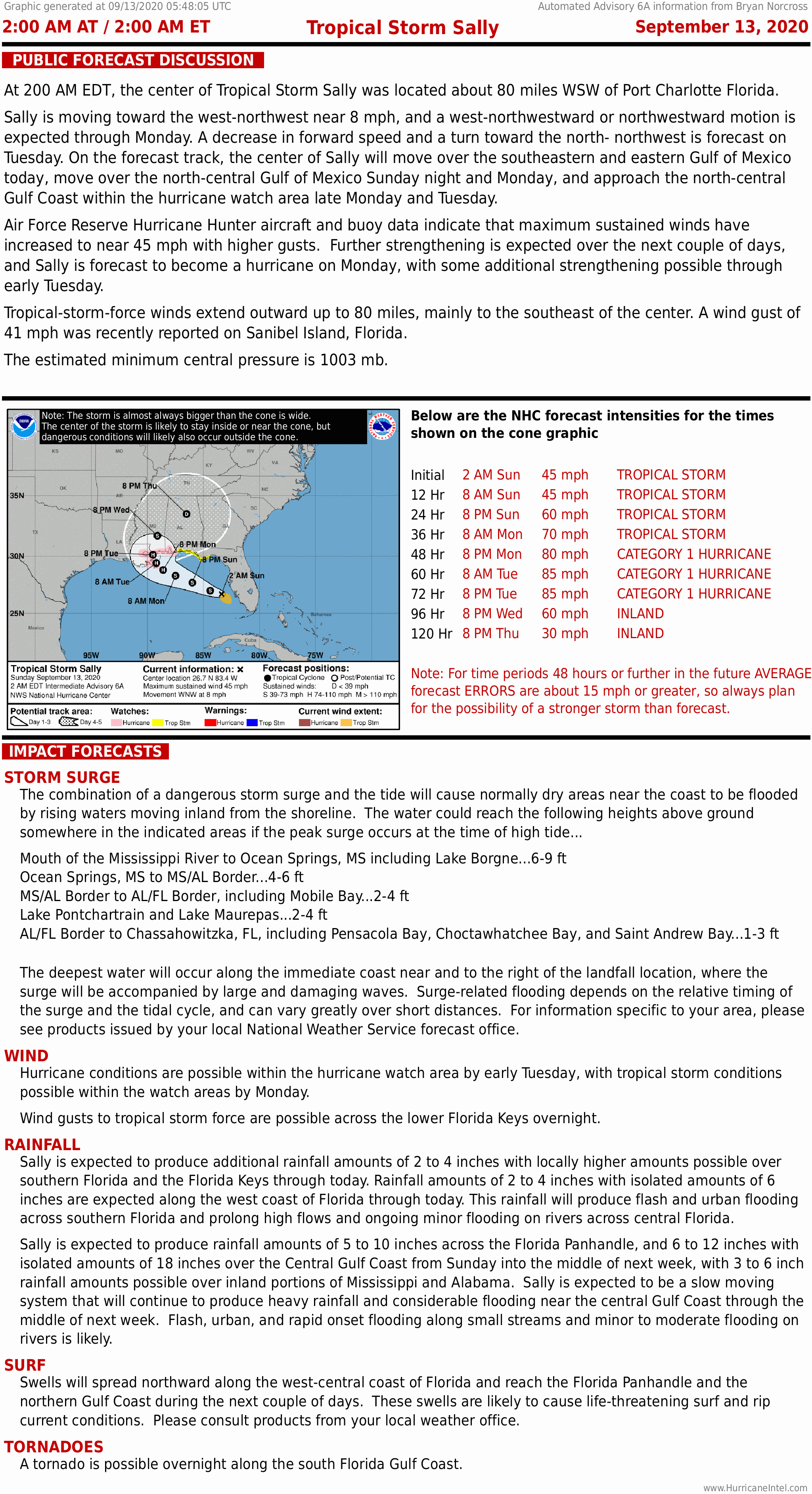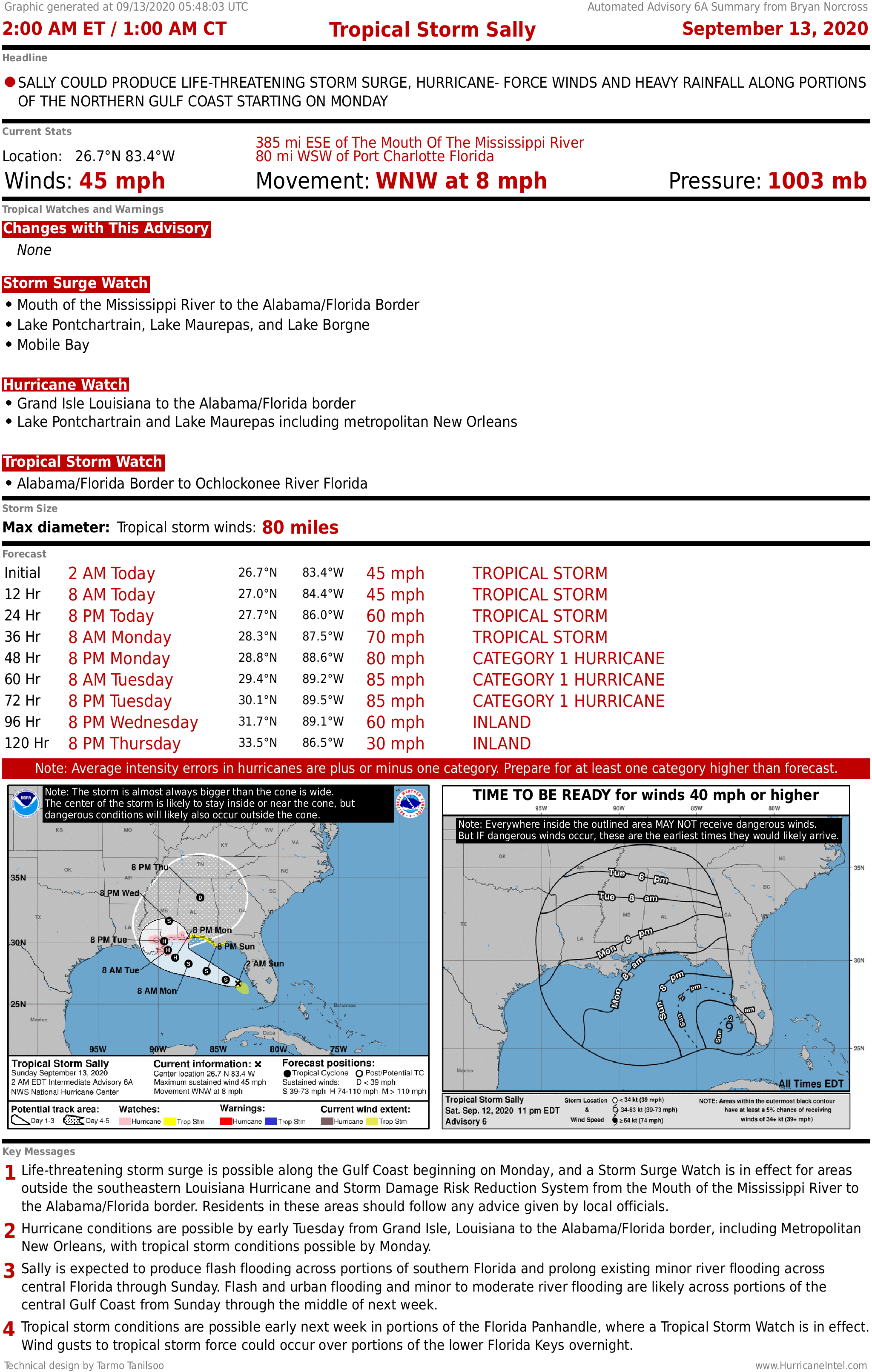 ...SALLY COULD PRODUCE LIFE-THREATENING STORM SURGE, HURRICANE- FORCE WINDS AND HEAVY RAINFALL ALONG PORTIONS OF THE NORTHERN GULF COAST STARTING ON MONDAY...