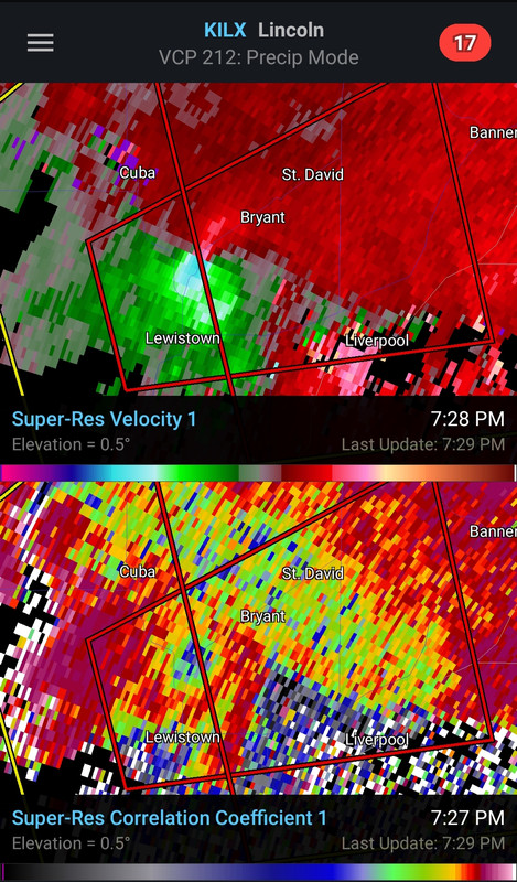 Confirmed now heading into Lewistown, IL. Really wrapped up as the storm made the turn.