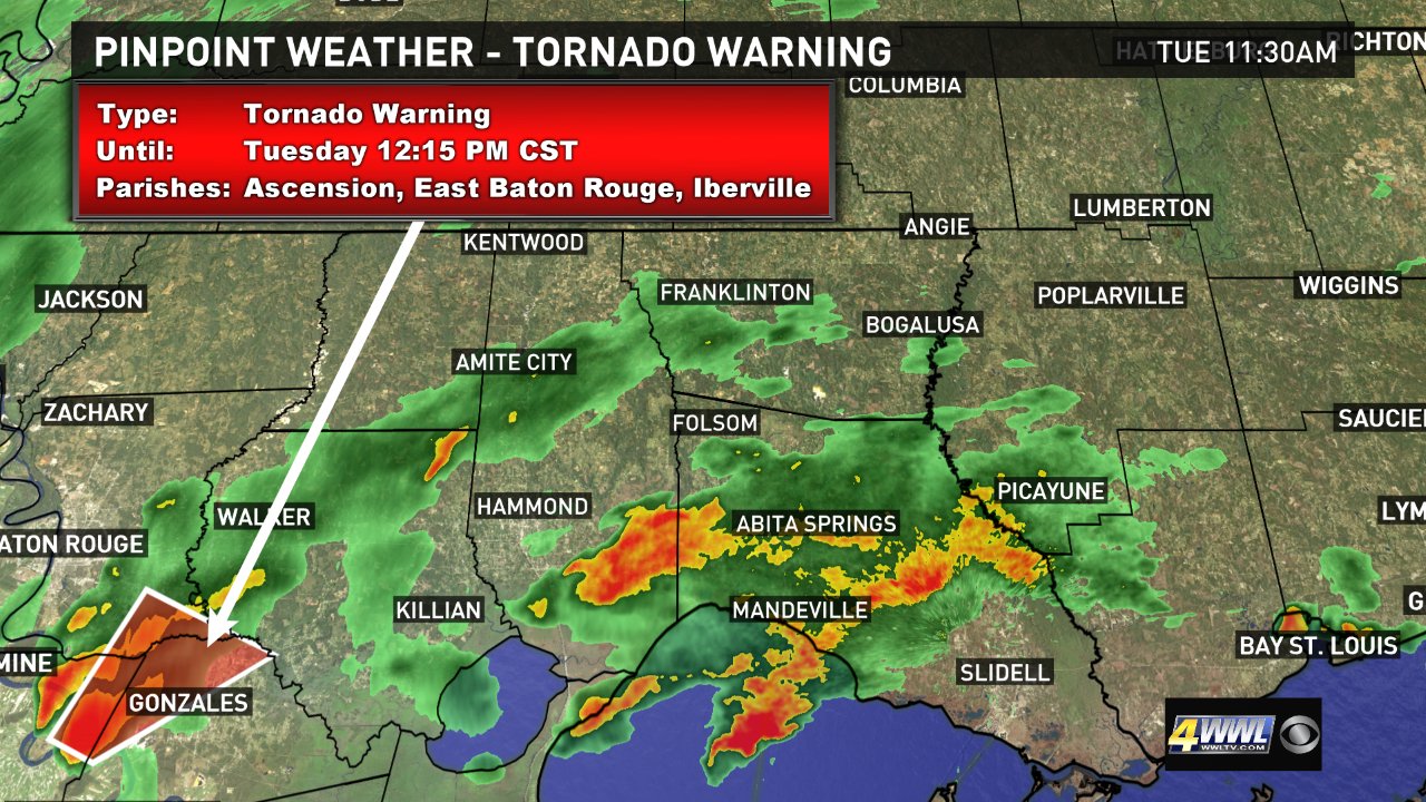 Ascension Parish has a tornado warning. Also St. Gabe in it as well.
