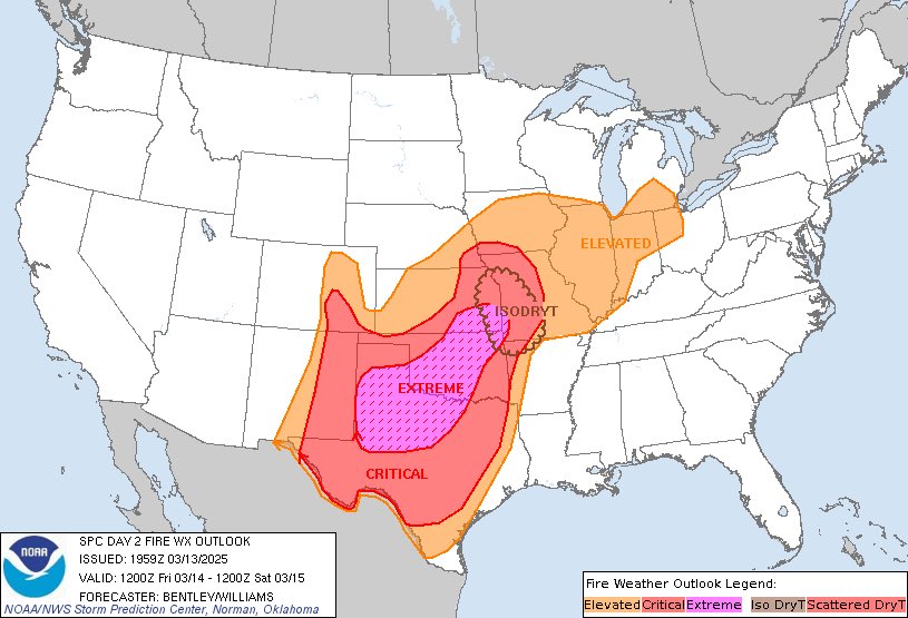 There is also pretty significant fire weather setting up for tomorrow. SPC also does fire weather outlooks, and this one is about as bad as it gets for the area.
