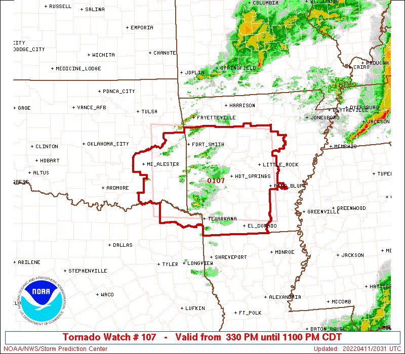 Not official yet, but a tornado watch is more than likely to be issued. Looks like between 6-7 is the start time for central Arkansas.