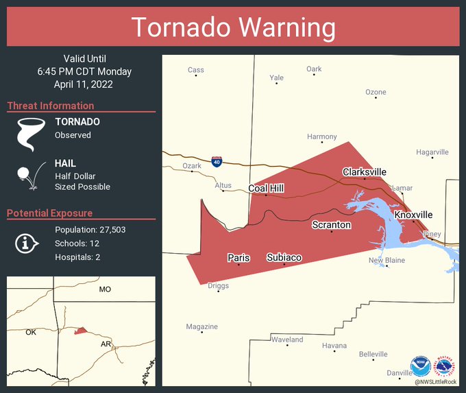 Headed right for Subiaco. Hope it doesn’t hit Subiaco Abbey. It’s a monastery and has a catholic boarding school Subiaco Academy
