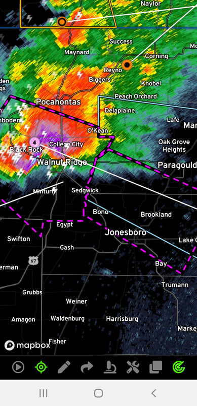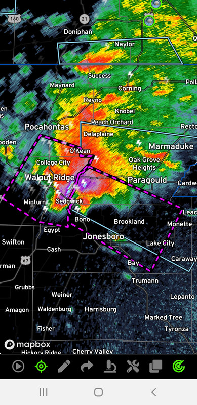 over Walnut Ridge, moving southeast at 50 mph. There have been