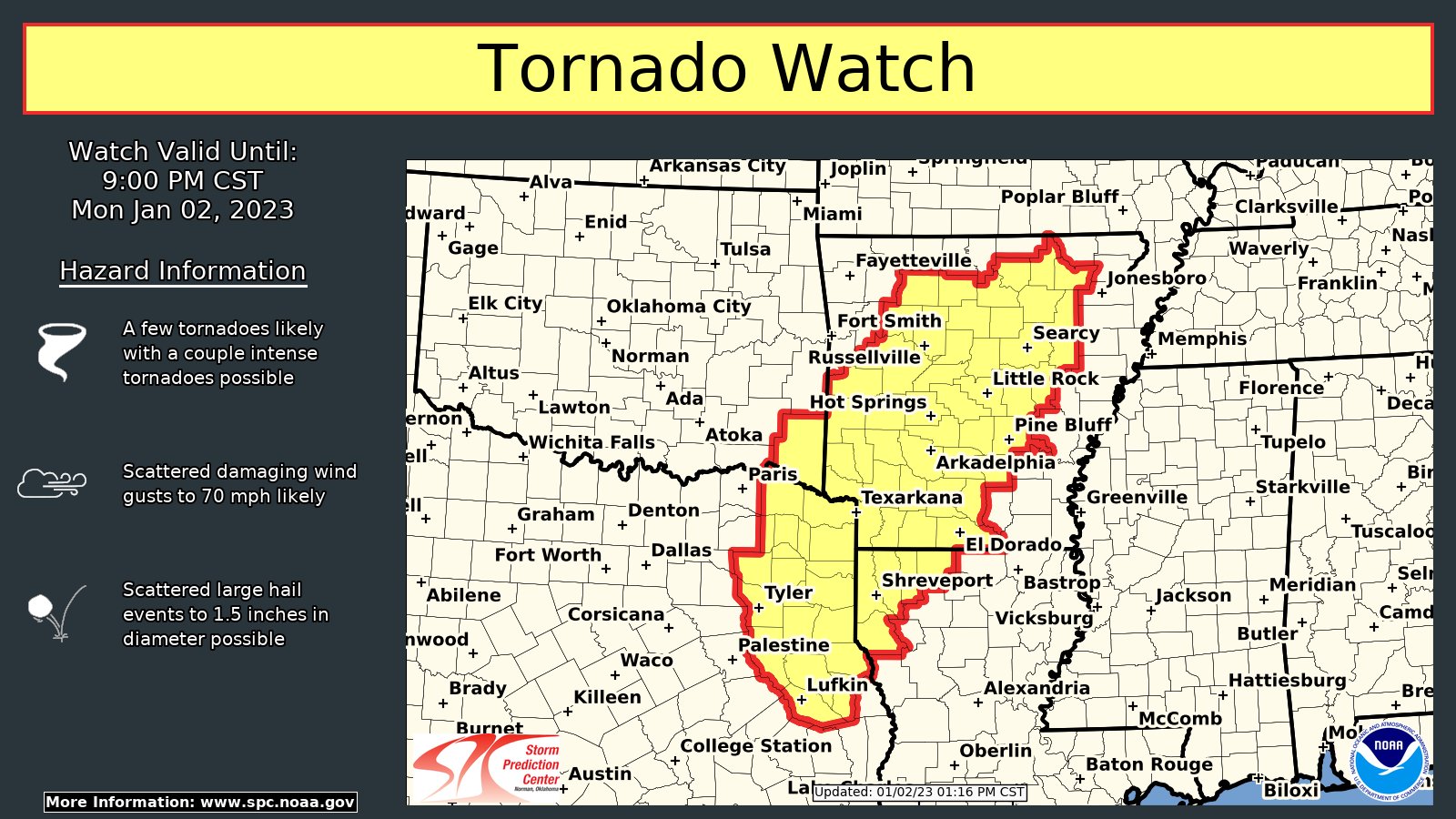 First Louisiana tor warning including Zwolle, Noble, and Many.