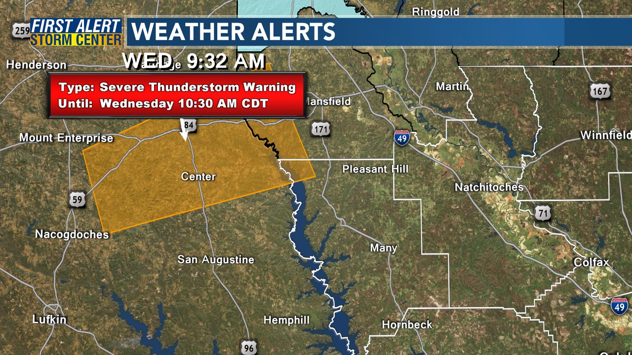 WEATHER ALERT: A severe t-storm warning has been issued for northwestern Sabine parish in northwestern Central Louisiana until 10:30AM this morning. Potential for 60 mph wind gusts and quarter sized hail may occur in this cell. Plenty of updates to come.