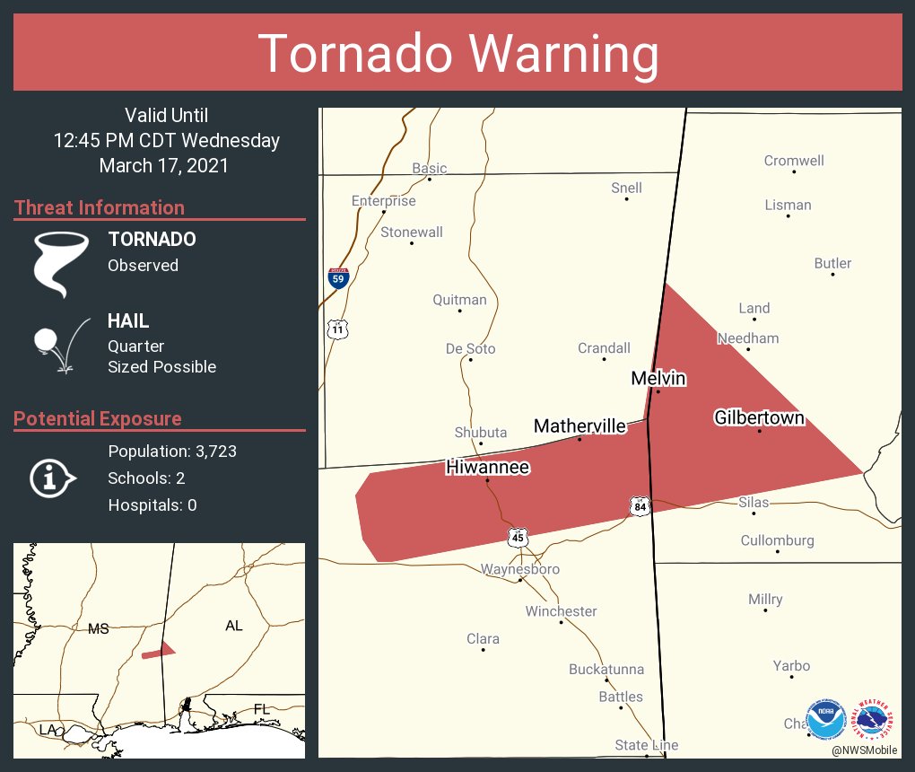 Confirmed Tornado Approaching Choctaw County, Alabama